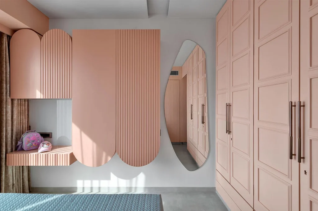The daughter’s bedroom focuses on efficient space utilization, ample storage and a refined, elegant look.